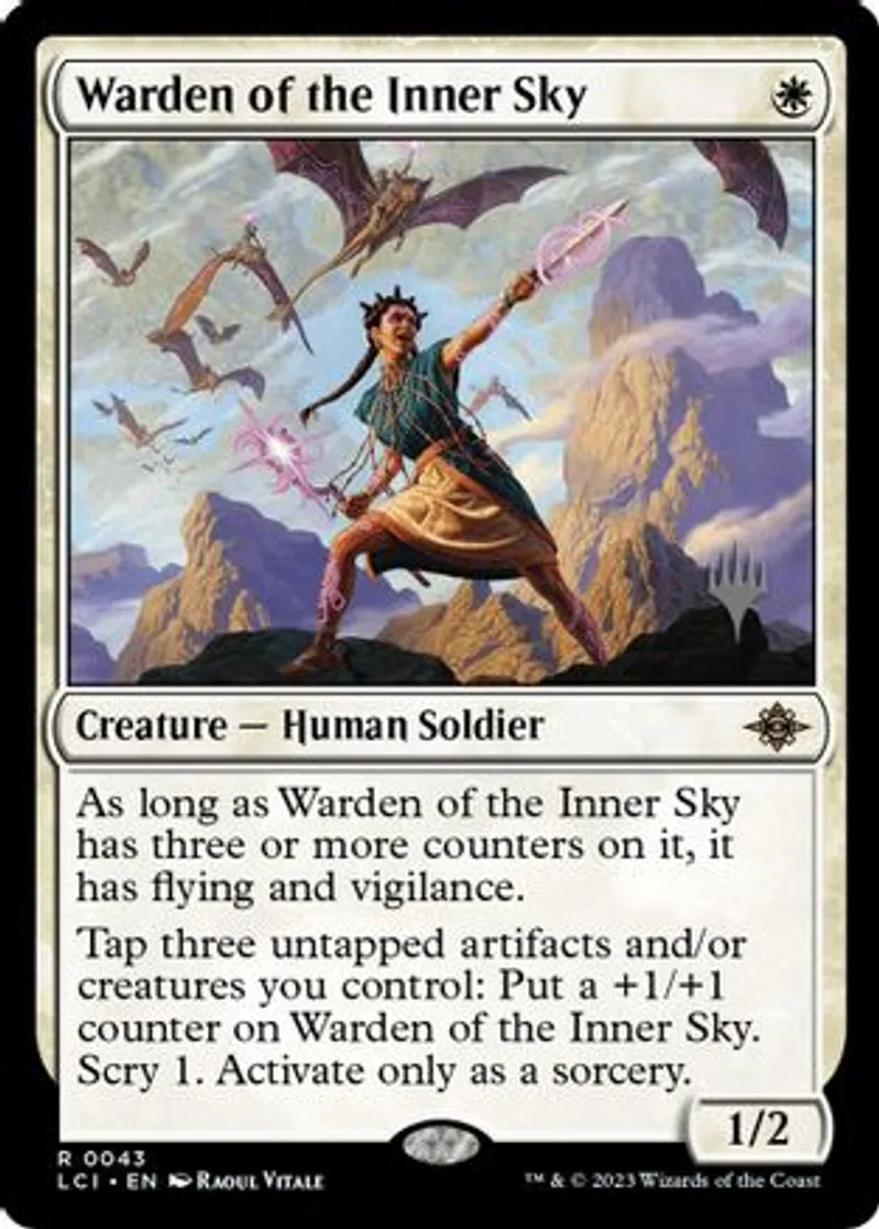 Magic: the Gathering (mtg) Rare Creature — Human Soldier Warden of the Inner Sky from Promo Pack: The Lost Caverns of Ixalan (PLCI) last updated 2025-12-18 15:42:31