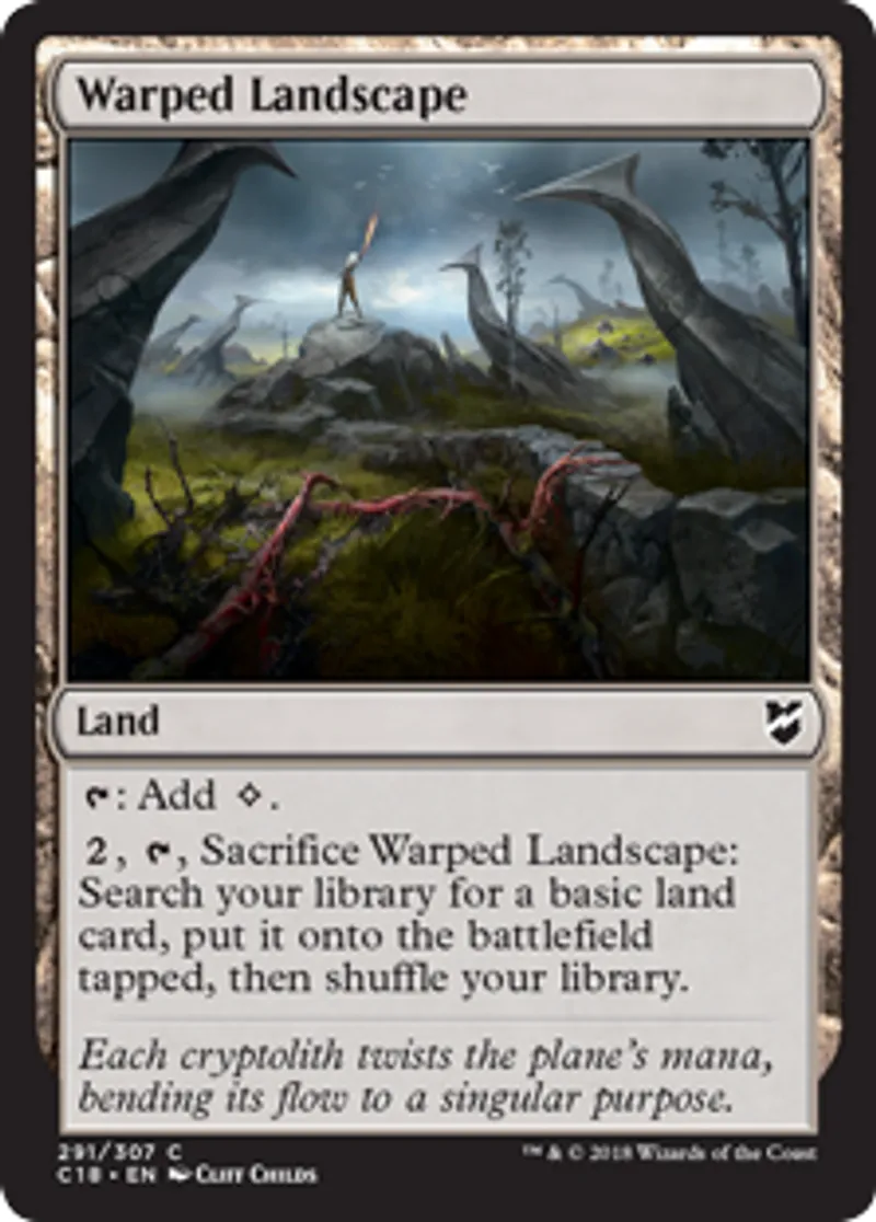 Magic: the Gathering (mtg) Common Land Warped Landscape from Commander 2018 (C18) last updated 2026-02-21 16:54:02