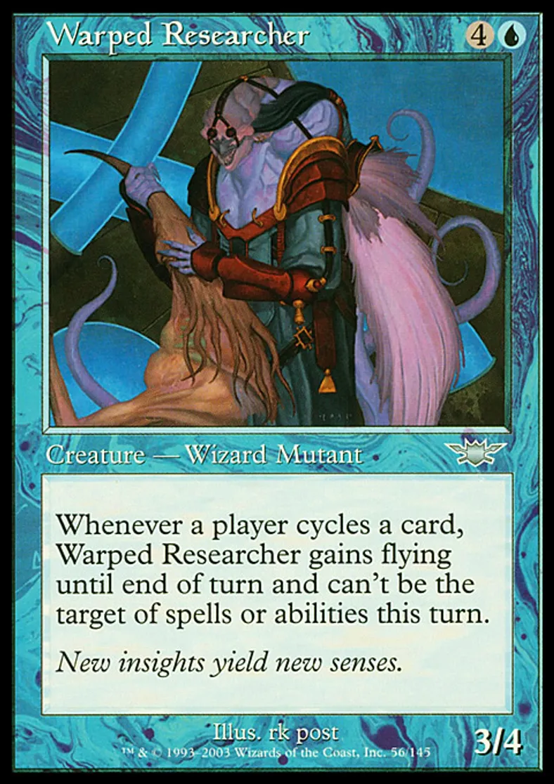 | Oracle Text | Whenever a player cycles a card, Warped Researcher gains flying and shroud until end of turn. (It can't be the target of spells or abilities.) | ||