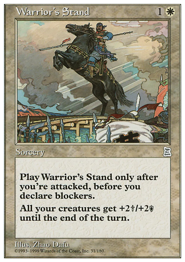 Magic: the Gathering (mtg) Uncommon Instant Warrior's Stand from Portal Three Kingdoms (PTK) last updated 2026-02-24 14:44:33