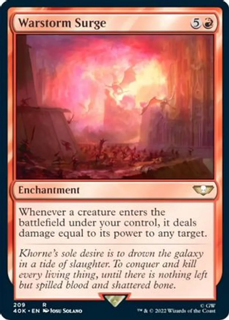 Magic: the Gathering (mtg) Rare Enchantment Warstorm Surge from Warhammer 40,000 (40K) last updated 2026-02-25 15:39:36