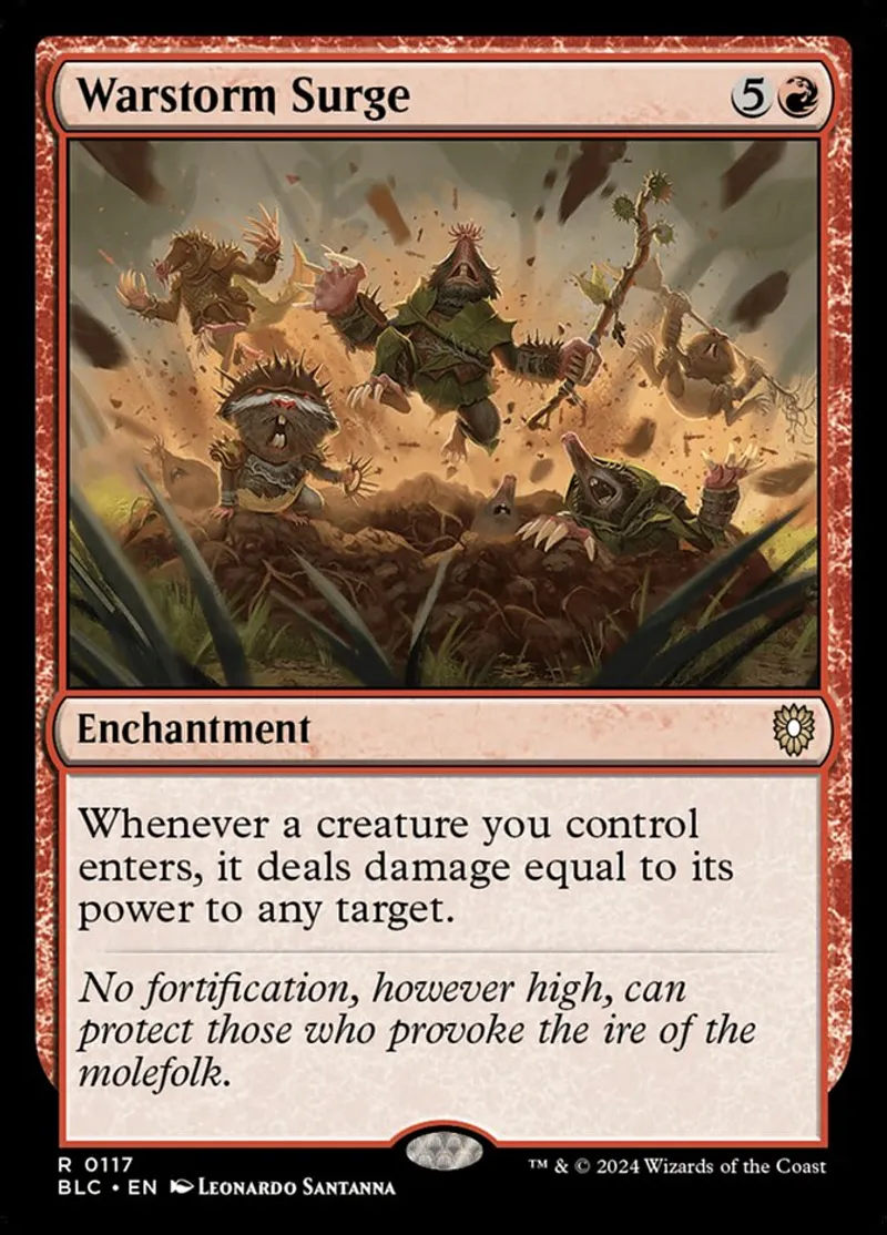 Magic: the Gathering (mtg) rare Enchantment Warstorm Surge from Bloomburrow Commander (blc) last updated 2026-03-31 16:04:13