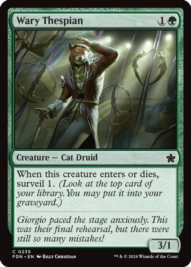 Magic: the Gathering (mtg) Common creature — cat druid Wary Thespian from Foundations (FDN) last updated 2026-02-21 15:32:36