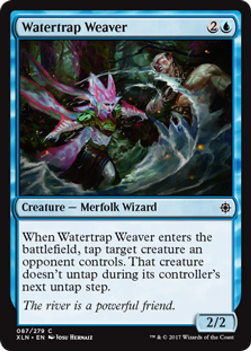 Magic: the Gathering (mtg) Common Creature - Merfolk Wizard Watertrap Weaver from Ixalan (XLN) last updated 2026-02-21 16:48:04