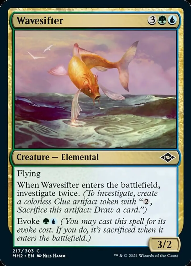 When Wavesifter enters the battlefield, investigate twice. (To investigate, create a colorless Clue artifact token with "{2}, Sacrifice this artifact: Draw a card.")