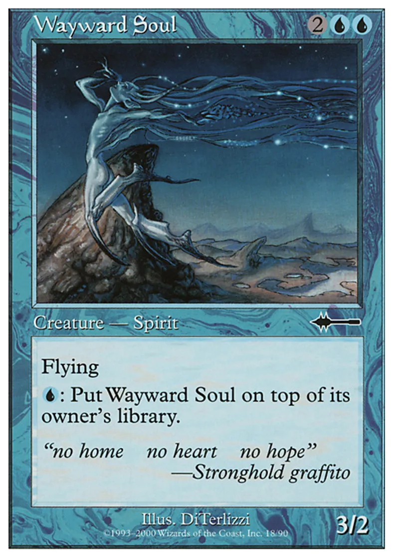 | Oracle Text | Flying {{u}}: Put Wayward Soul on top of its owner's library. | ||