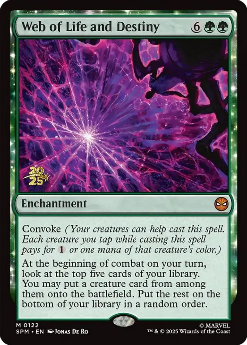 Magic: the Gathering (mtg) Mythic Rare enchantment Web of Life and Destiny from Prerelease Cards (pPRE) last updated 2026-01-19 14:15:32