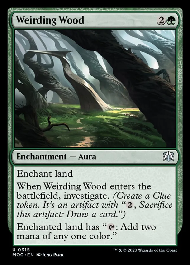 Magic: the Gathering (mtg) uncommon Enchantment — Aura Weirding Wood from March of the Machine Commander (moc) last updated 2026-02-21 15:40:02