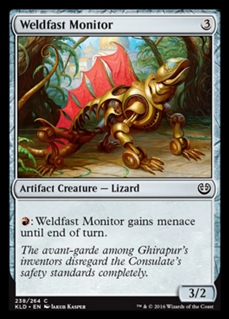 Magic: the Gathering (mtg) Common Artifact Creature - Lizard Weldfast Monitor from Kaladesh (KLD) last updated 2026-02-21 17:26:33