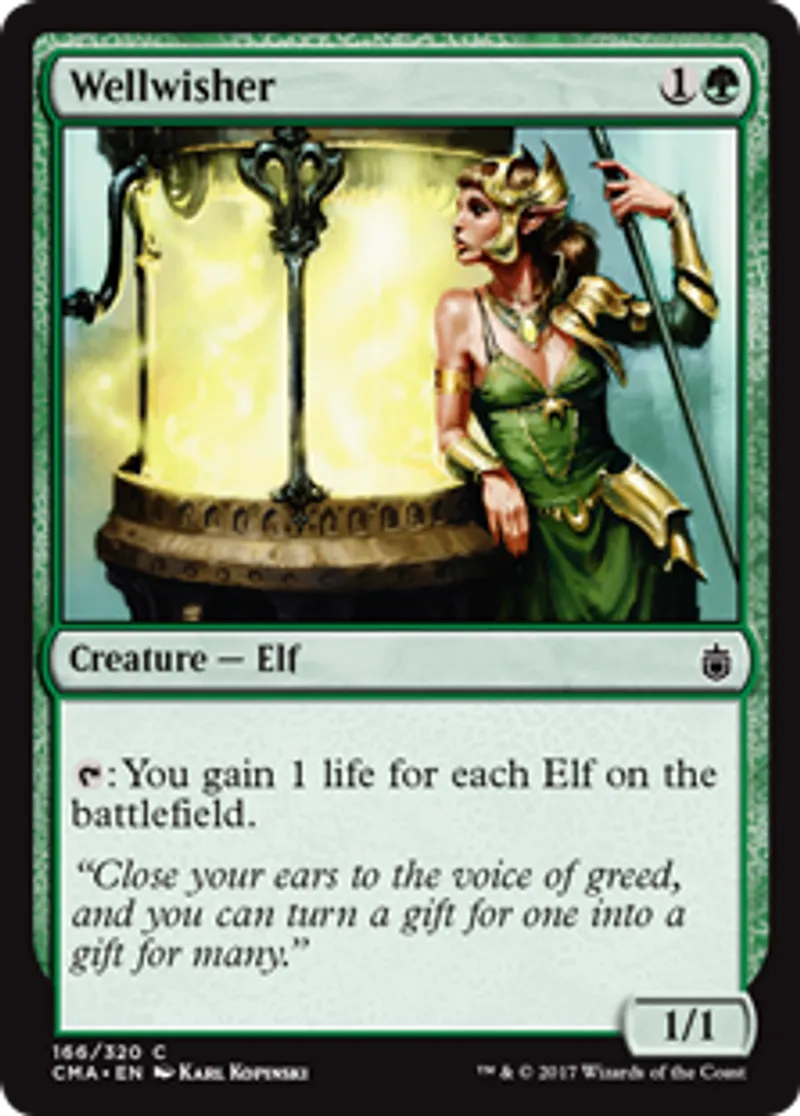 Magic: the Gathering (mtg) Common Creature - Elf Wellwisher from Commander Anthology (CMA) last updated 2026-02-25 15:00:02