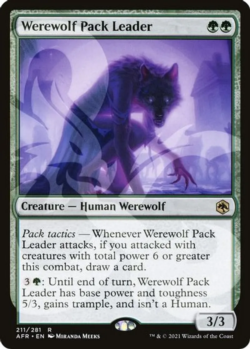 | Oracle Text | Pack tactics — Whenever Werewolf Pack Leader attacks, if you attacked with creatures with total power 6 or greater this combat, draw a card.