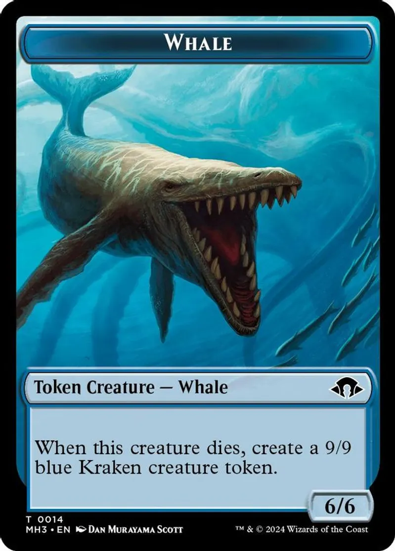 Magic: the Gathering (mtg) Token Token Creature — Whale Whale // Energy Reserve Double-Sided Token from Modern Horizons 3 Tokens (TMH3) last updated 2025-12-13 15:21:02