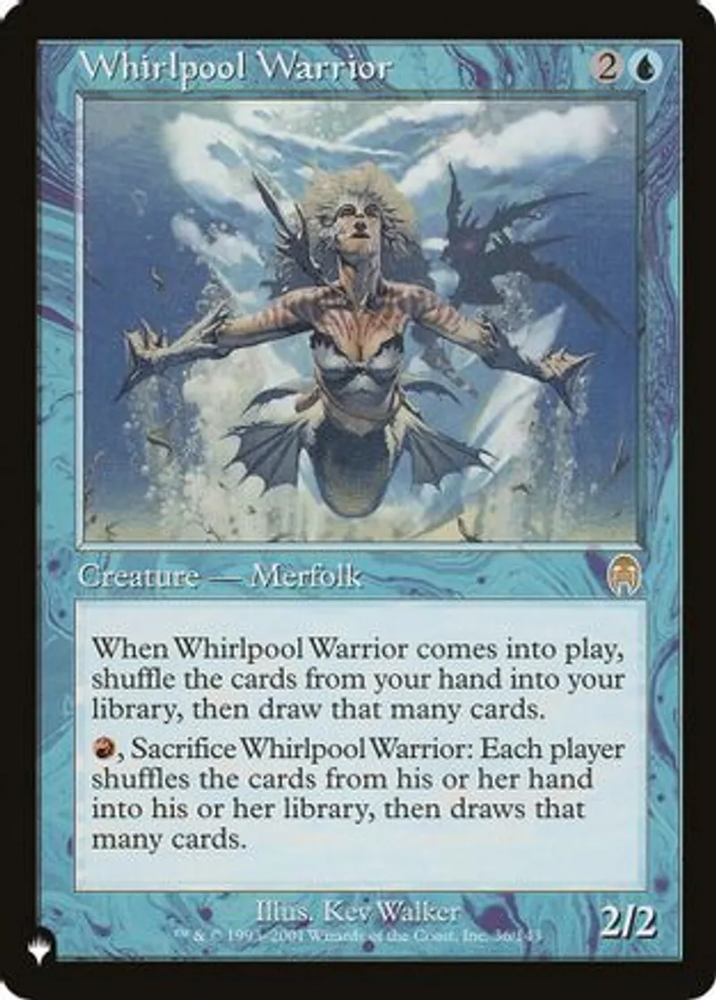 | Oracle Text | When Whirlpool Warrior comes into play, shuffle the cards from your hand into your library, then draw that many cards.
