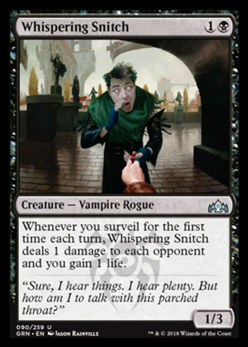 Magic: the Gathering (mtg) Uncommon Creature - Vampire Rogue Whispering Snitch from Guilds of Ravnica (GRN) last updated 2026-02-21 16:54:37