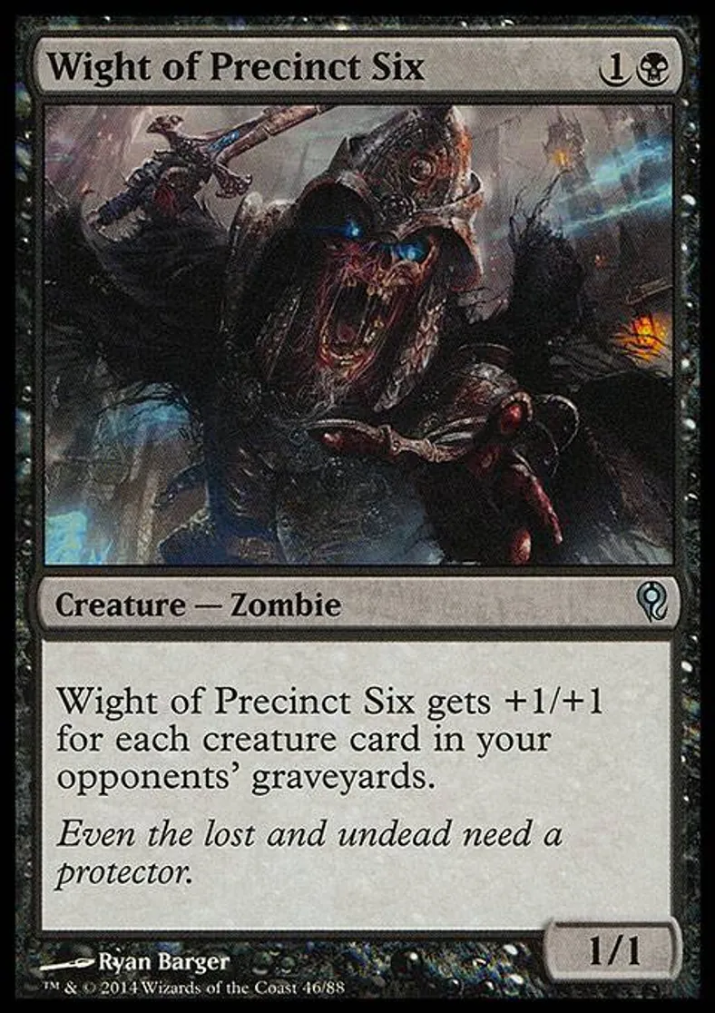 | Oracle Text | Wight of Precinct Six gets +1/+1 for each creature card in your opponents' graveyards. | ||