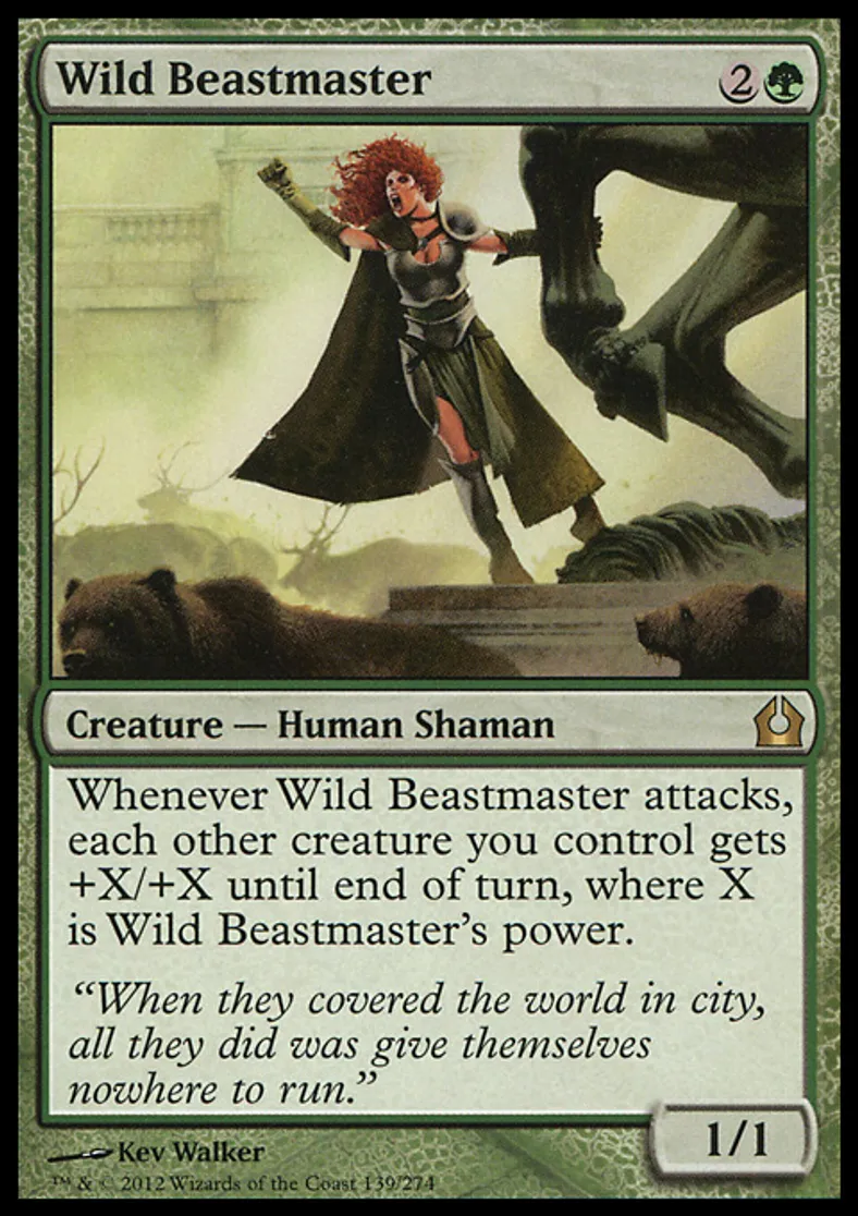 | Oracle Text | Whenever Wild Beastmaster attacks, each other creature you control gets +X/+X until end of turn, where X is Wild Beastmaster's power. | ||