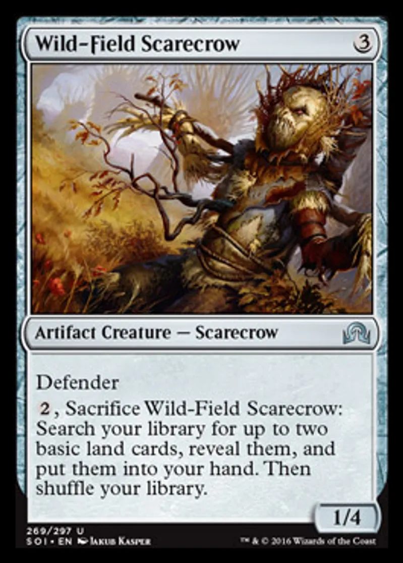 | Oracle Text | Defender {{2}}, Sacrifice Wild-Field Scarecrow: Search your library for up to two basic land cards, reveal them, and put them into your hand. Then shuffle your library. | ||