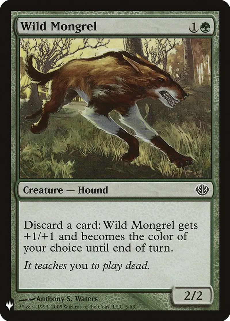 | Oracle Text | Discard a card: Wild Mongrel gets +1/+1 and becomes the color of your choice until end of turn. | ||