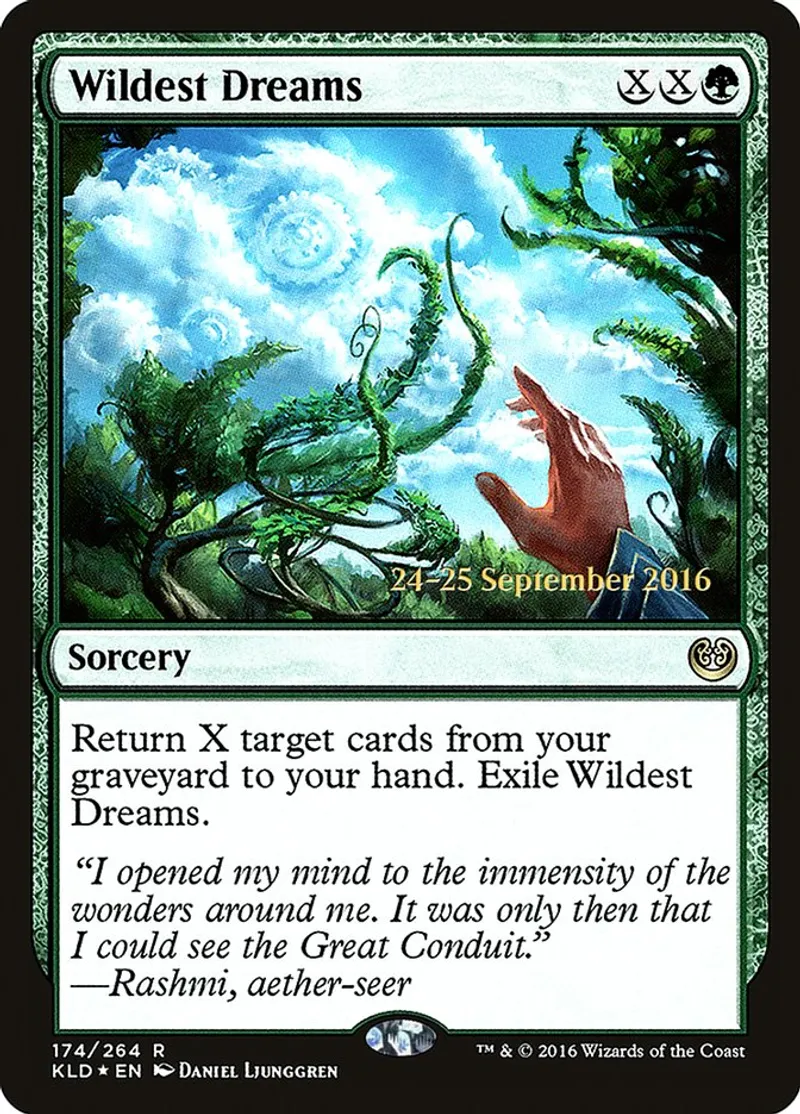 | Oracle Text | Return X target cards from your graveyard to your hand. Exile Wildest Dreams. | ||