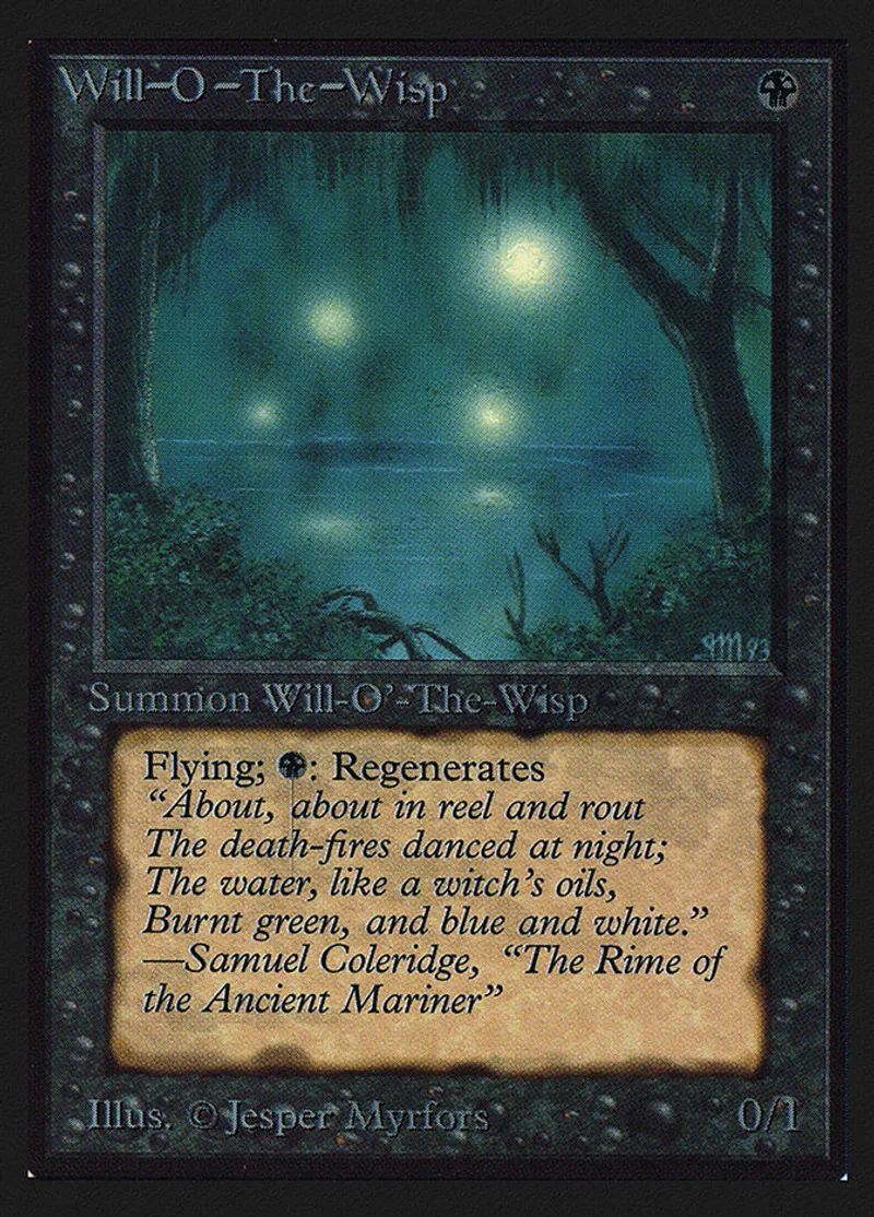 | Oracle Text | Flying (This creature can't be blocked except by creatures with flying or reach.) {{b}}: Regenerate Will-o'-the-Wisp. (The next time this creature would be destroyed this turn, it isn't. Instead tap it, remove all damage from it, and remove it from combat.) | ||