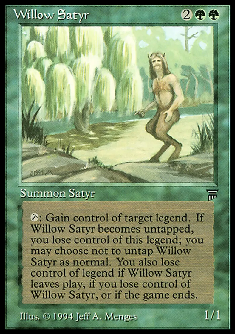 | Oracle Text | You may choose not to untap Willow Satyr during your untap step. {{t}}: Gain control of target legendary creature for as long as you control Willow Satyr and Willow Satyr remains tapped. | ||