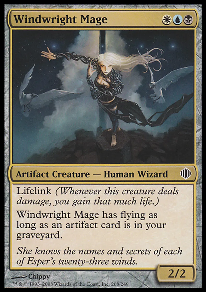 | Oracle Text | Lifelink (Damage dealt by this creature also causes you to gain that much life.) Windwright Mage has flying as long as an artifact card is in your graveyard. | ||
