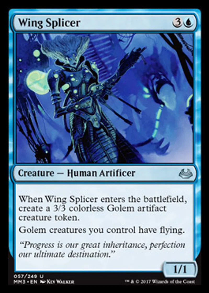 | Oracle Text | When Wing Splicer enters the battlefield, create a 3/3 colorless Golem artifact creature token. Golem creatures you control have flying. | ||
