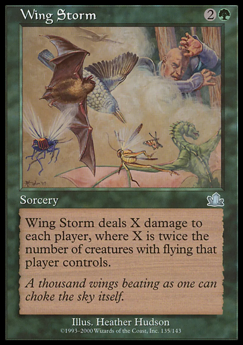 | Oracle Text | Wing Storm deals damage to each player equal to twice the number of creatures with flying that player controls. | ||