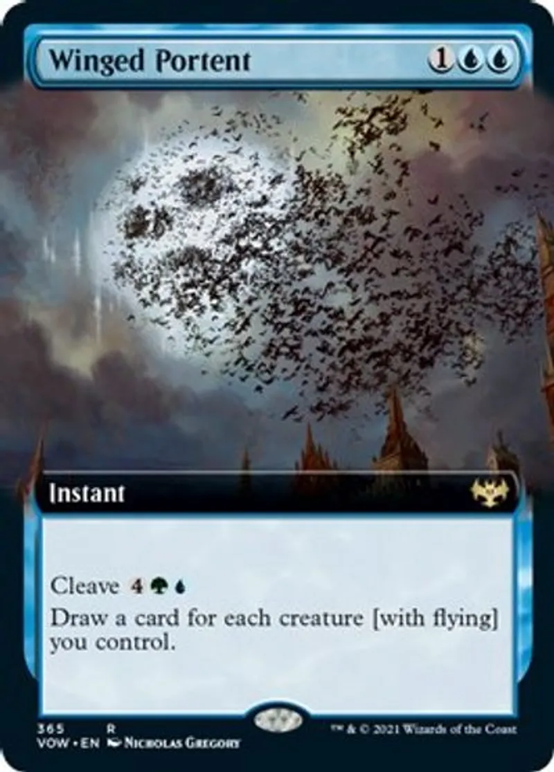 Winged Portent (Extended Art) is a Rare in the set Innistrad: Crimson Vow.