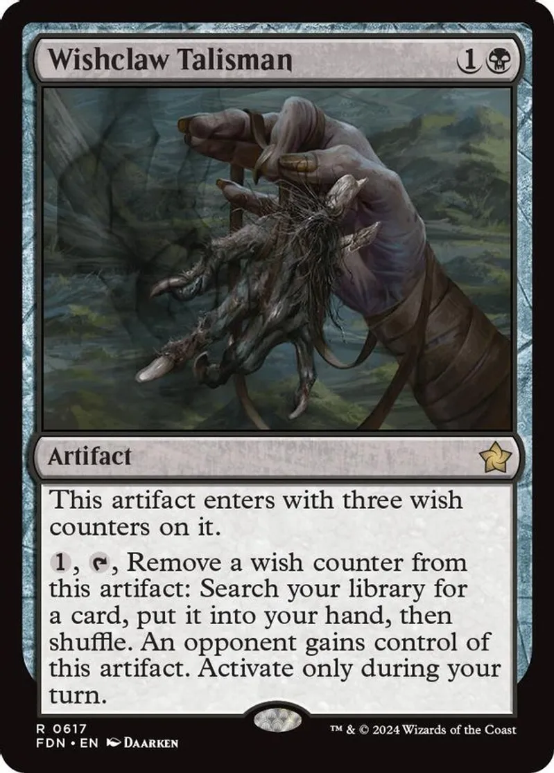 Magic: the Gathering (mtg) Rare artifact Wishclaw Talisman from Foundations (FDN) last updated 2026-02-25 14:50:32