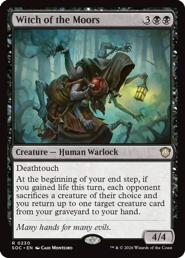 Magic: the Gathering (mtg) Rare creature — human warlock Witch of the Moors from Commander: Secrets of Strixhaven (SOC) last updated 2026-04-17 00:24:38