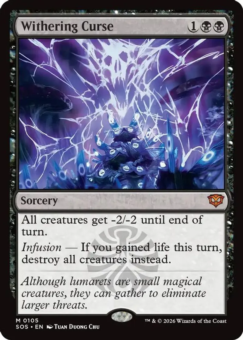Magic: the Gathering (mtg) Mythic Rare sorcery Withering Curse from Secrets of Strixhaven (SOS) last updated 2026-04-08 02:34:03
