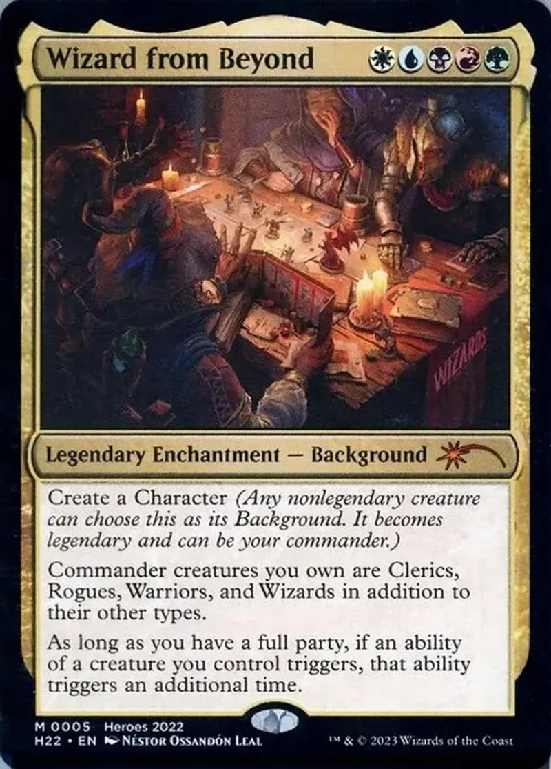 Magic: the Gathering (mtg) Mythic Rare Legendary Enchantment - Background Wizard from Beyond from Heroes 2022 (H22) last updated 2026-04-08 13:48:00