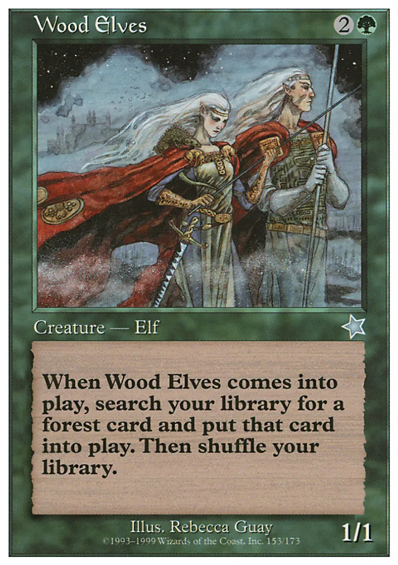 | Oracle Text | When Wood Elves enters the battlefield, search your library for a Forest card and put that card onto the battlefield. Then shuffle your library. | ||