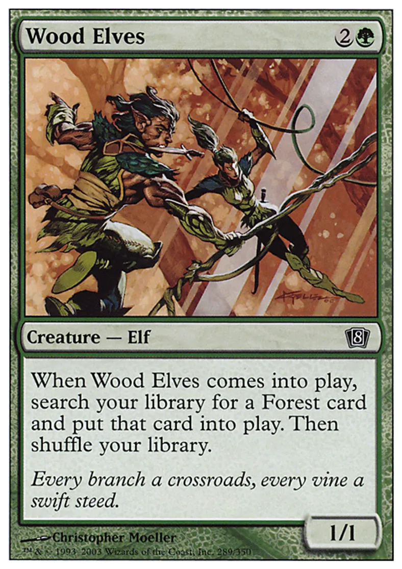 | Oracle Text | When Wood Elves enters the battlefield, search your library for a Forest card and put that card onto the battlefield. Then shuffle your library. | ||