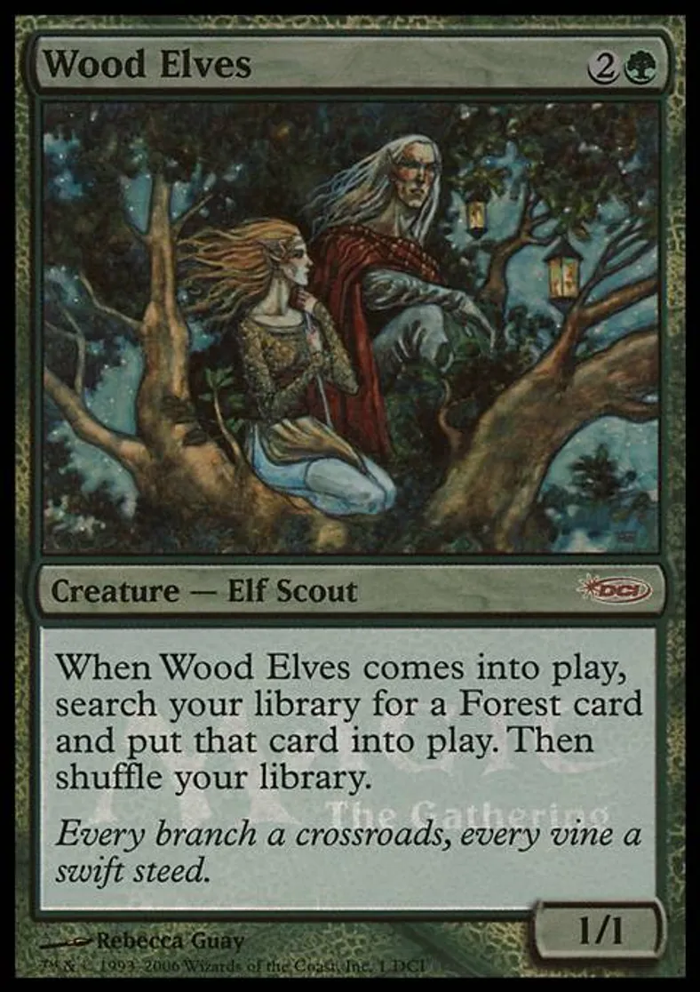 | Oracle Text | When Wood Elves enters the battlefield, search your library for a Forest card and put that card onto the battlefield. Then shuffle your library. | ||