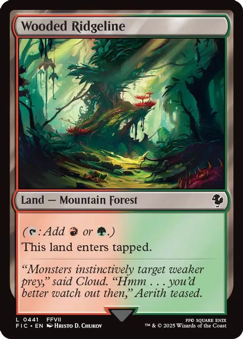 Wooded Ridgeline is a Basic Land in the set Commander: FINAL FANTASY.