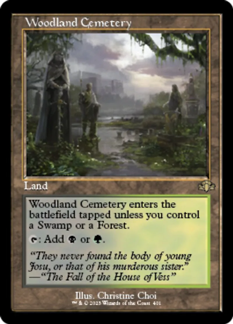 Woodland Cemetery (Retro Frame) is a rare in the set Dominaria Remastered.