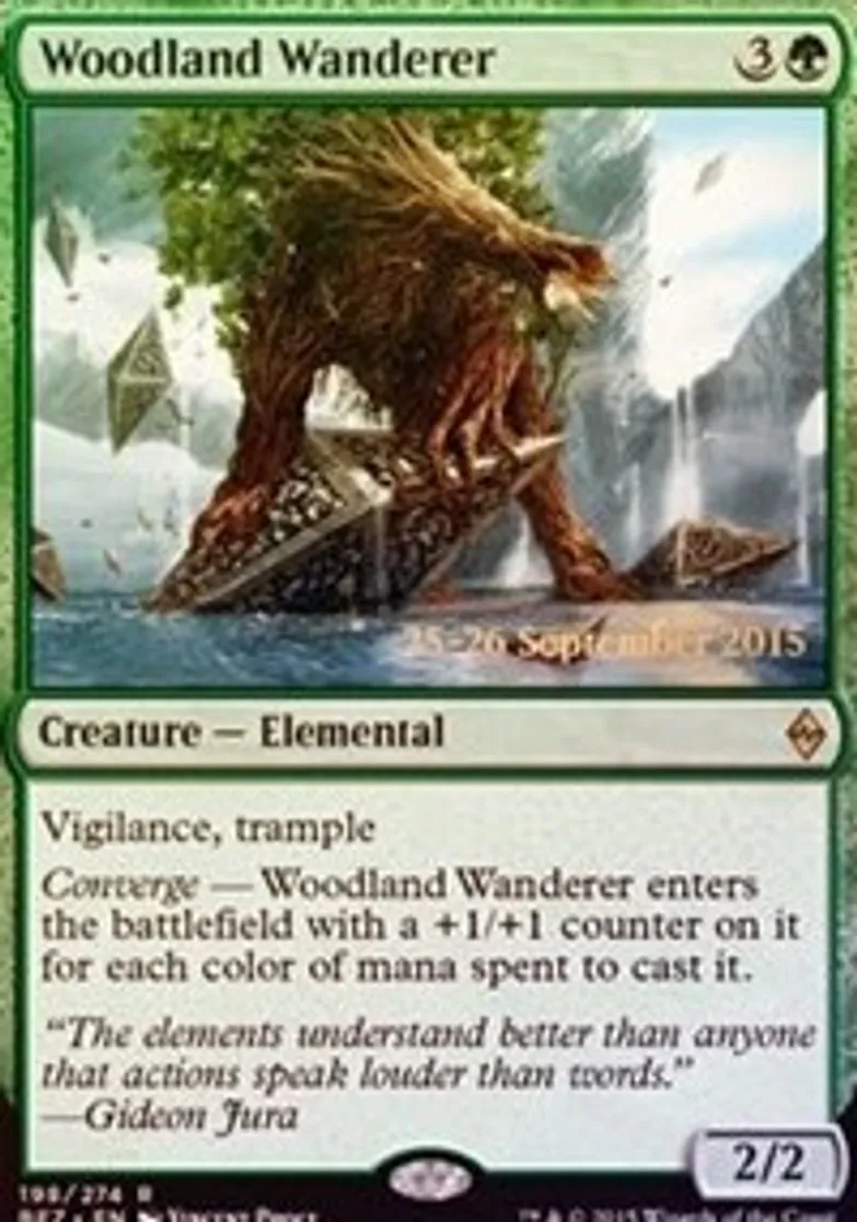 Converge — Woodland Wanderer enters the battlefield with a +1/+1 counter on it for each color of mana spent to cast it. | ||