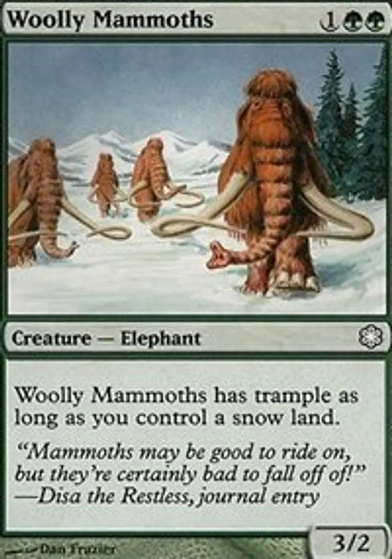 | Oracle Text | Woolly Mammoths has trample as long as you control a snow land. | ||