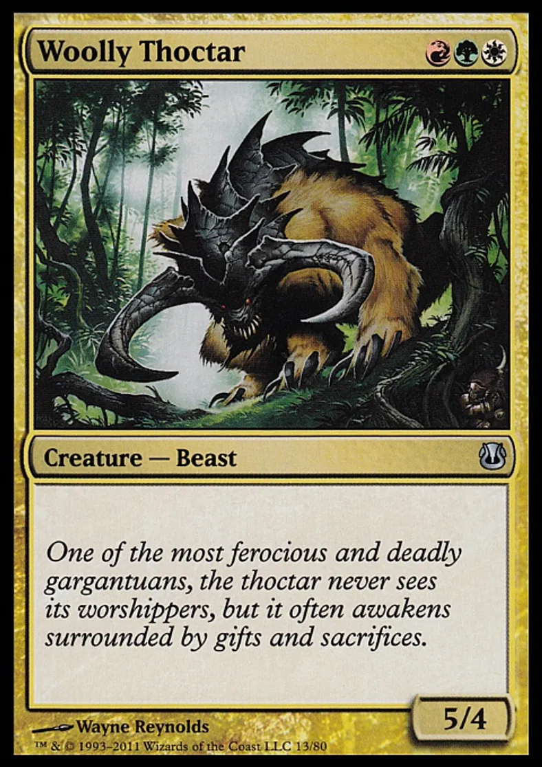 Woolly Thoctar is a Uncommon in the set Duel Decks: Ajani vs. Nicol Bolas.