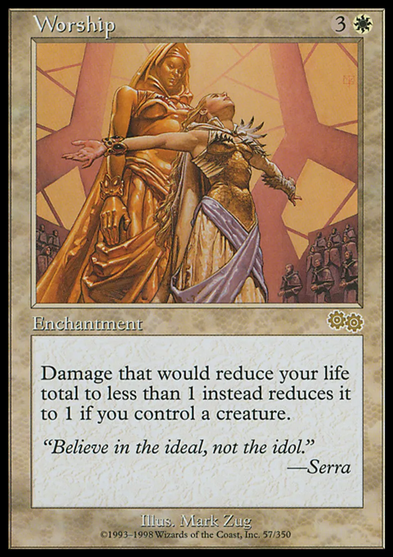 Magic: the Gathering (mtg) Rare Enchantment Worship from Urza's Saga (USG) last updated 2026-02-25 15:09:36