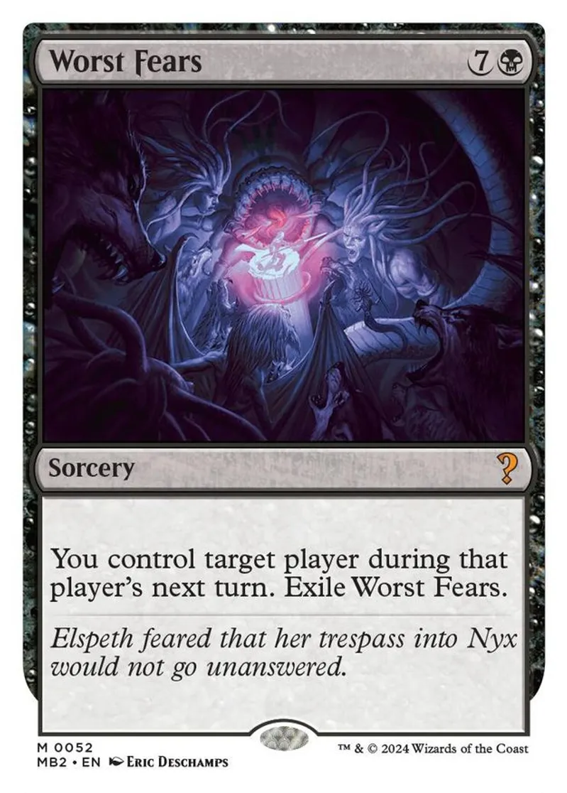 Worst Fears (White Border) is a Mythic Rare in the set Mystery Booster 2.