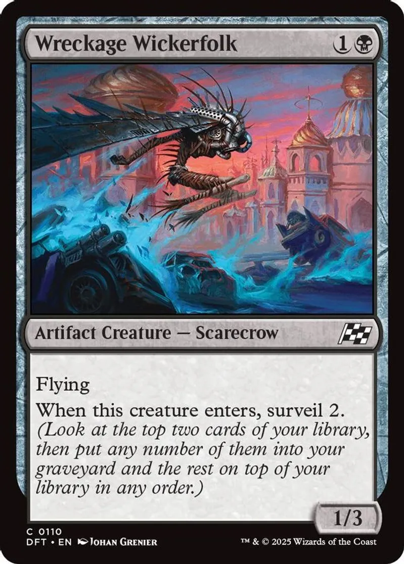 Magic: the Gathering (mtg) Common artifact creature — scarecrow Wreckage Wickerfolk from Aetherdrift (DFT) last updated 2025-12-13 15:36:01