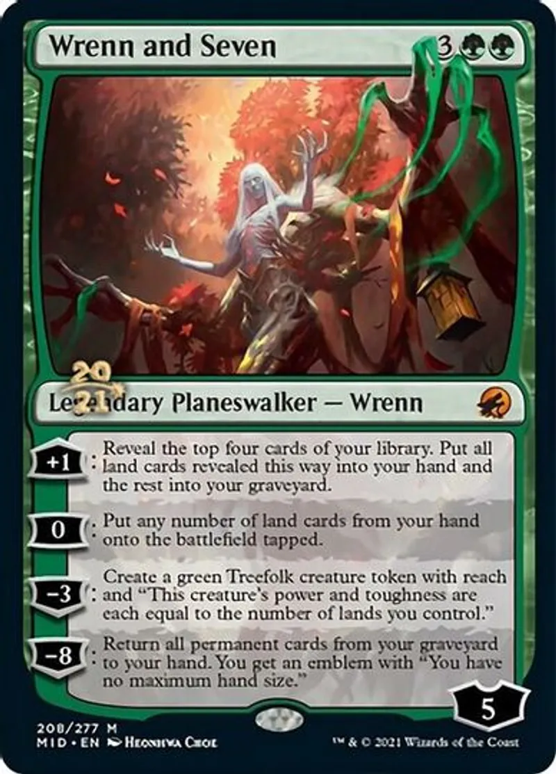 Magic: the Gathering (mtg) Mythic Rare Legendary Planeswalker — Wrenn Wrenn and Seven from Prerelease Cards (pPRE) last updated 2026-02-24 14:35:06