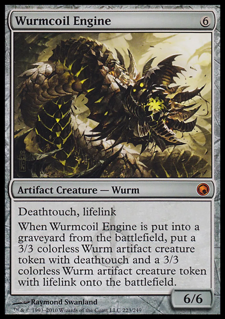 | Oracle Text | Deathtouch, lifelink When Wurmcoil Engine dies, put a 3/3 colorless Wurm artifact creature token with deathtouch and a 3/3 colorless Wurm artifact creature token with lifelink onto the battlefield. | ||