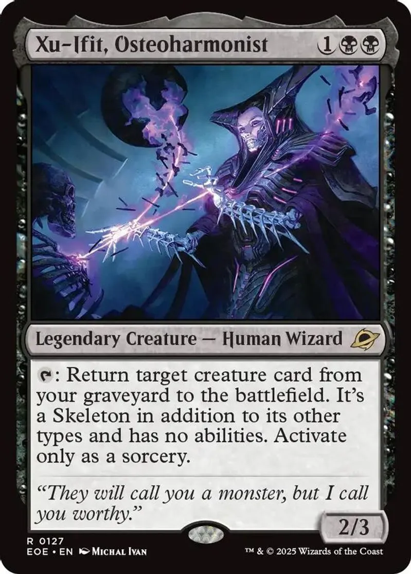 Magic: the Gathering (mtg) Rare legendary creature — human wizard Xu-Ifit, Osteoharmonist from Edge of Eternities (EOE) last updated 2026-02-21 15:12:02