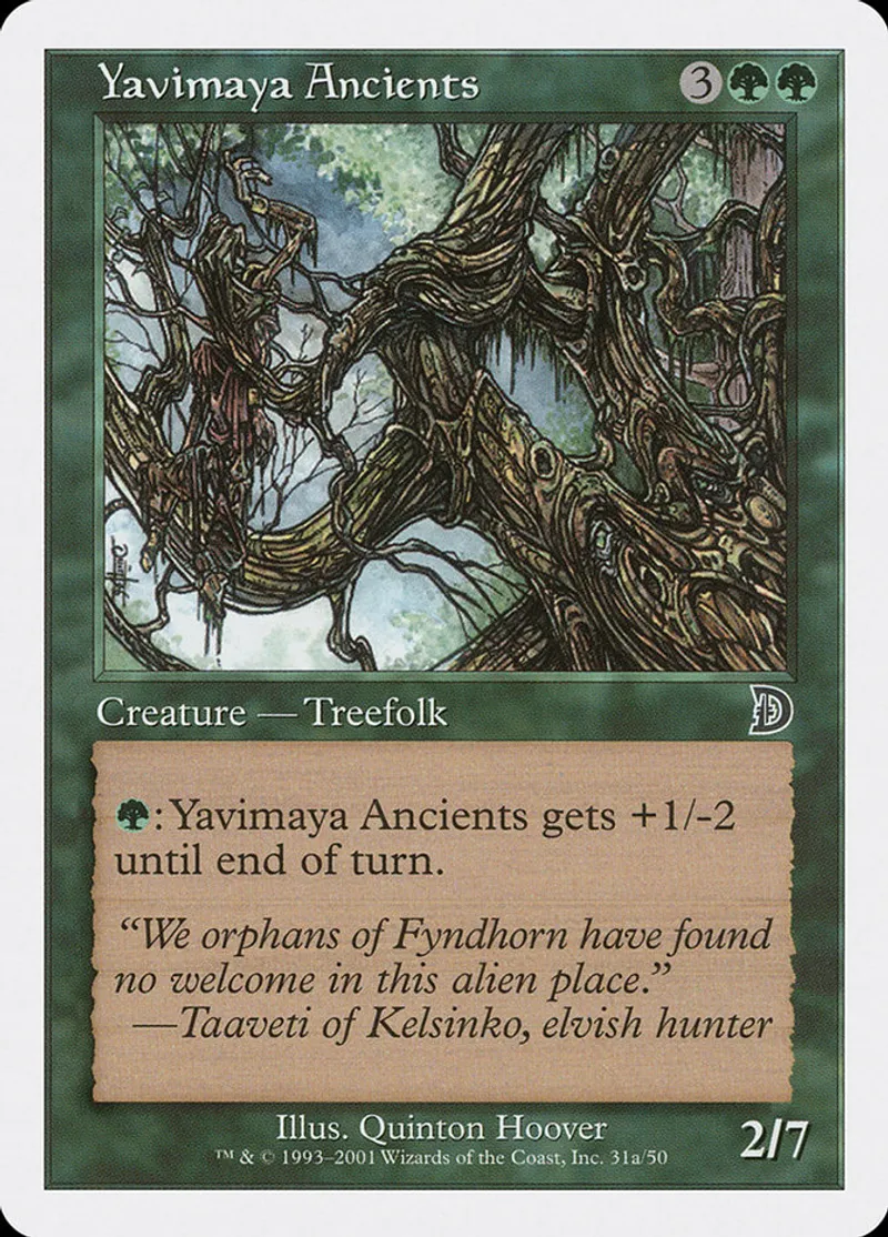 Yavimaya Ancients is a common in the set Deckmasters: Garfield vs. Finkel.