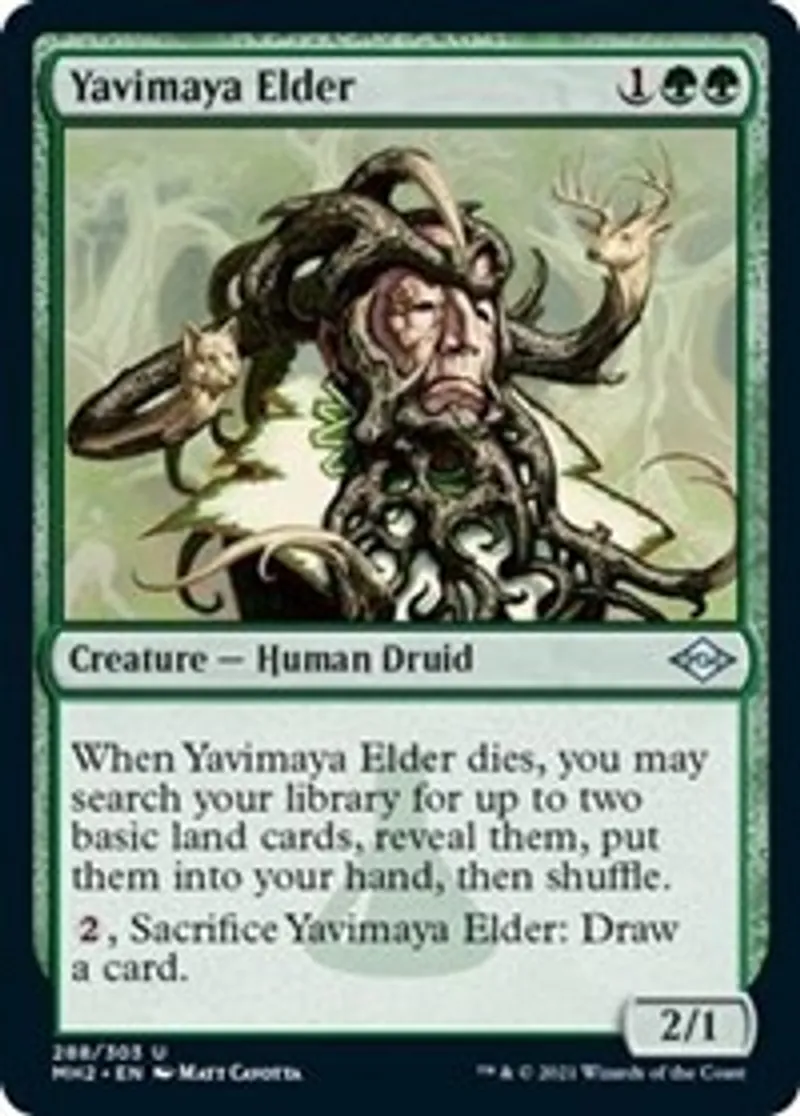 Magic: the Gathering (mtg) Uncommon Creature - Human Druid Yavimaya Elder from Modern Horizons 2 (MH2) last updated 2026-02-21 16:38:02