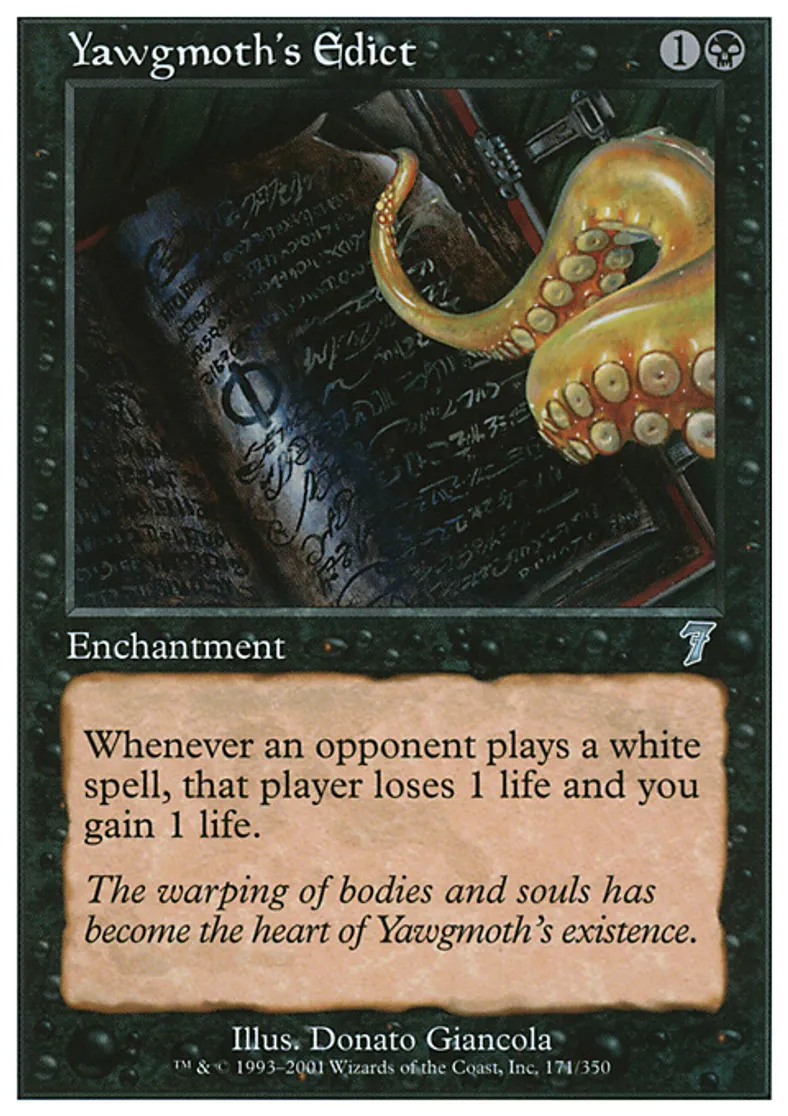 Yawgmoth's Edict is a Uncommon in the set Seventh Edition.